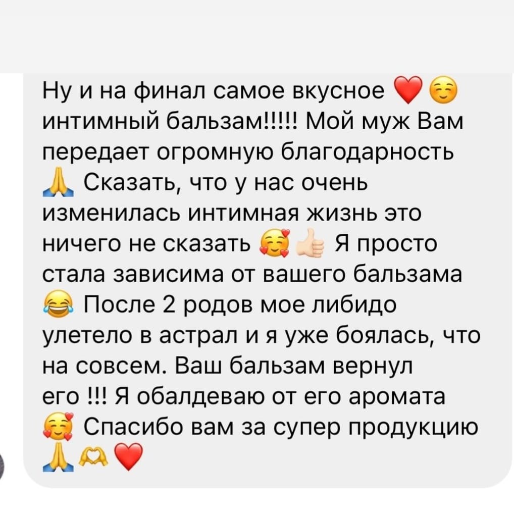 Этот бальзам-афродизиак — прекрасное средство для улучшения интимной жизни, повышения либидо и создания комфортных условий для близости. Его состав, включающий эфирные масла, делает его не только эффективным, но и безопасным для чувствительных зон, а также приятным в использовании.
