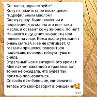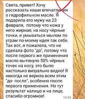 - Не оставляет жирной пленки: Масло не оставляет неприятного ощущения жирности или пленки на коже.