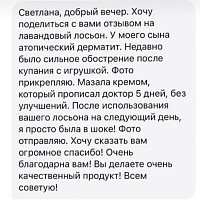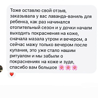 Содержит эфирные масла лаванды и ванили, которые не только способствуют регенерации кожи, но и оказывают успокаивающее и расслабляющее действие. Это делает крем идеальным для применения перед сном, особенно для детей, помогая им расслабиться и чувствовать себя в безопасности.