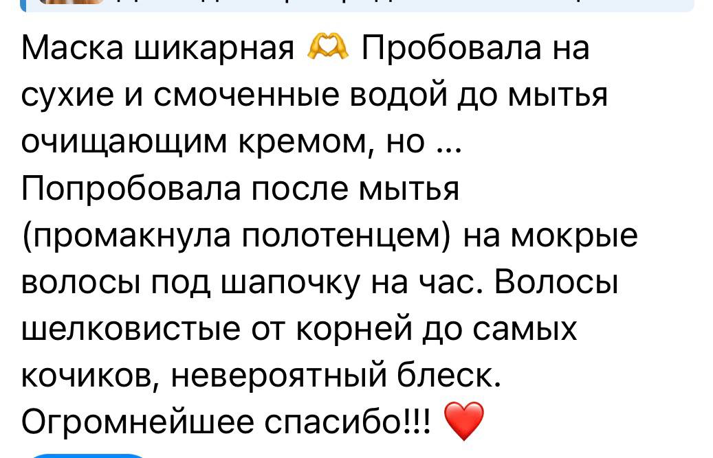- Маска не утяжеляет волосы и не делает их жирными.