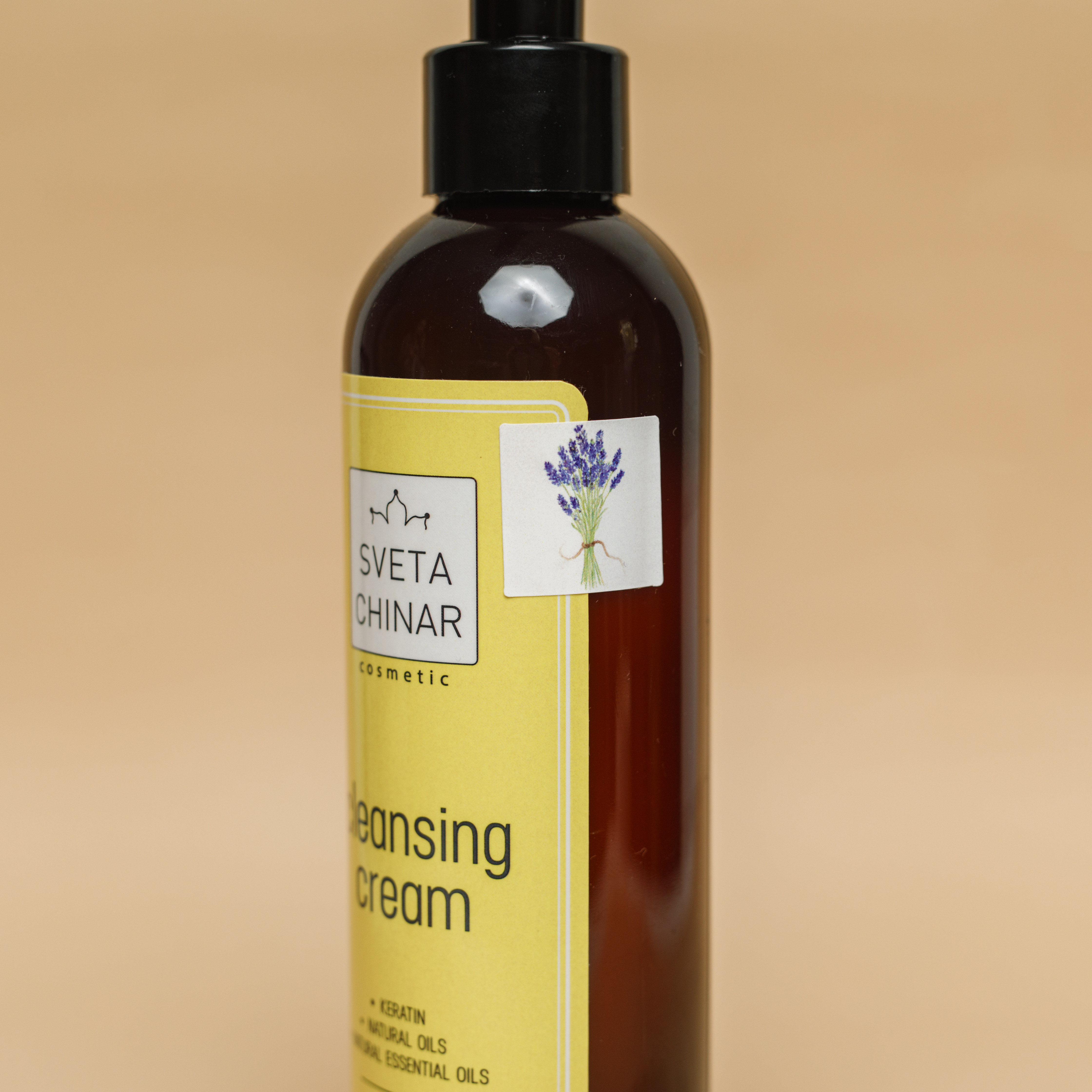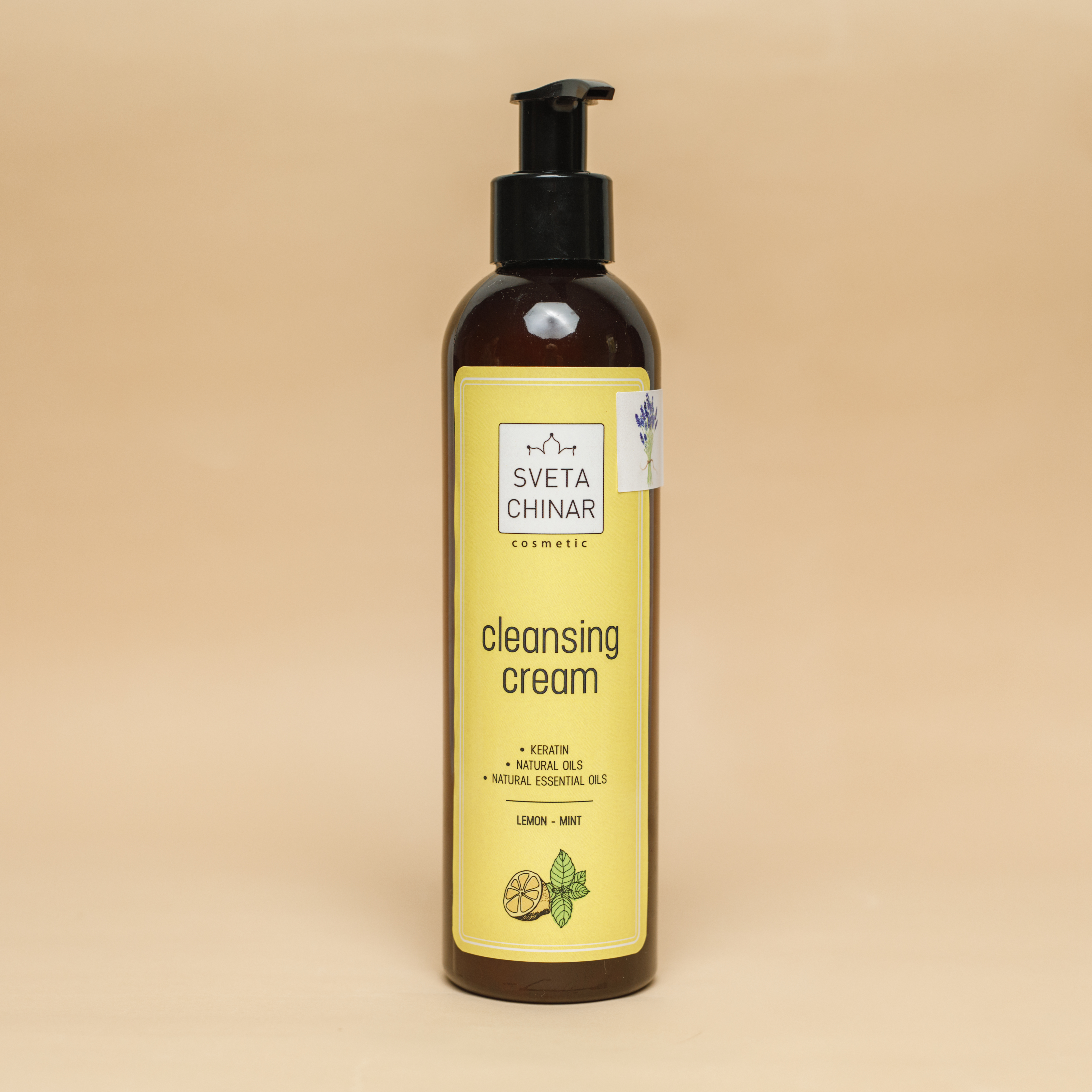 Этикетка такая же как на основном очищающем креме плюс добавлен стикер с веточкой лаванды.